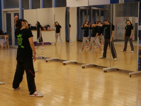 音楽に合わせて手や足を鳴らし、ビートを身体に刻み込みます。