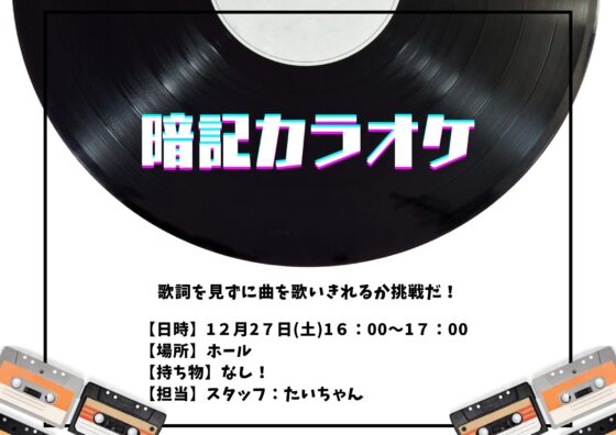 年末なので、忘年会気分でみんなで楽しく歌いましょう!!