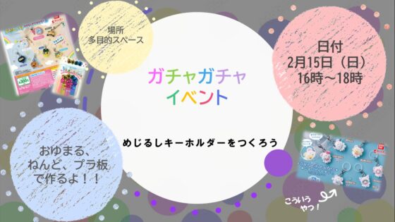 2月15日の16:00〜18:00に、ガチャガチャによくある目印キーホルダー作りをやります!🎀