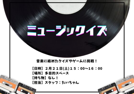 「このイントロ、聴いたことある!」「この曲のタイトルなんだっけ!?」と、ついつい熱くなっちゃう音楽クイズ大会を開催します!
